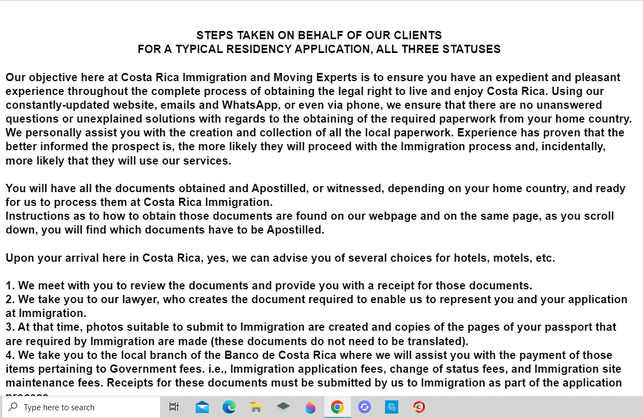 *These fees in Section 3 are to be paid directly by the client at The Bank of Costa Rica when here. We will take you to the bank and assist in the transactions.