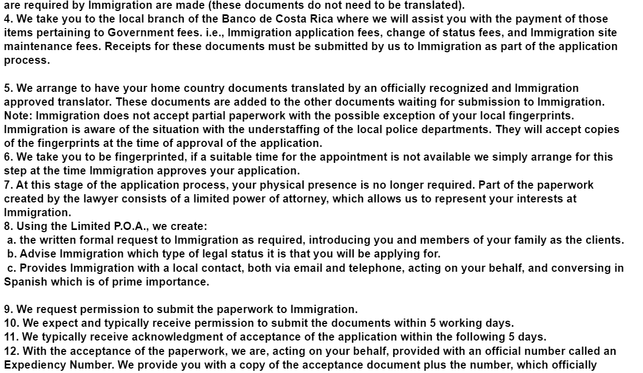 *These fees in Section 3 are to be paid directly by the client at The Bank of Costa Rica when here. We will take you to the bank and assist in the transactions.